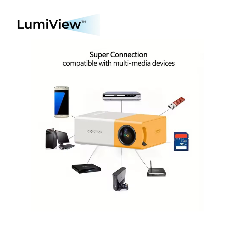 - ✅ 1 × Mini Portable HD Projector (White & Yellow)